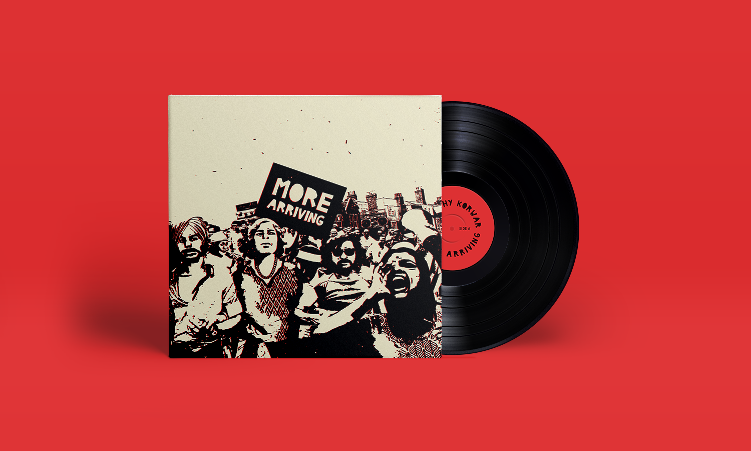"The first thing that captures attention is the dramatic album cover, with the cheeky title 'More Arriving' emblazoned on a placard held by a protestor. Designed by Tushar Menon, the design pays tribute to the protest movements that took place across Britain in the 70s and 80s, fuelled by the Grunwick strikes and the Southall riots."